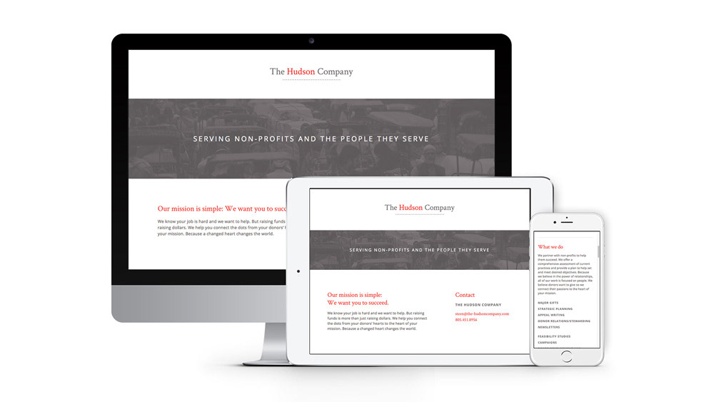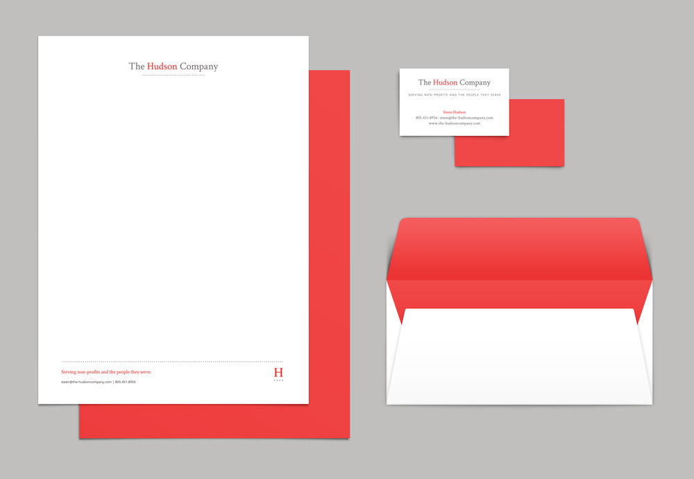 Brand identity for The Hudson Company including logo design, business card and stationery, and website build.